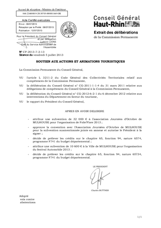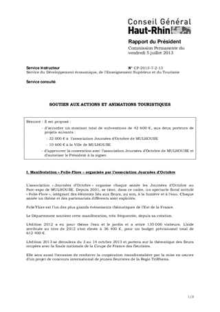 Il est proposé : - d’accorder un montant total de subventions de 42 600 €, aux deux porteurs de projets suivants : - 32 000 € à l’association Journées d’Octobre de MULHOUSE - 10 600 € à la Ville de MULHOUSE - d’approuver la convention avec l’association Journées d’Octobre de MULHOUSE et d’autoriser le Président à la signer.