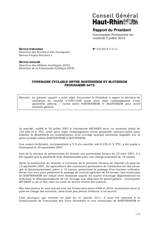 ITINERAIRE CYCLABLE ENTRE BARTENHEIM ET BLOTZHEIM PROGRAMME A472