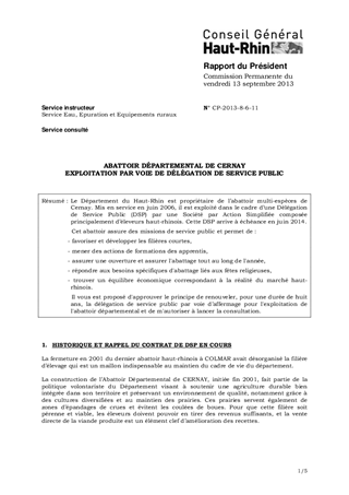 ABATTOIR DÉPARTEMENTAL DE CERNAY EXPLOITATION PAR VOIE DE DÉLÉGATION DE SERVICE PUBLIC
