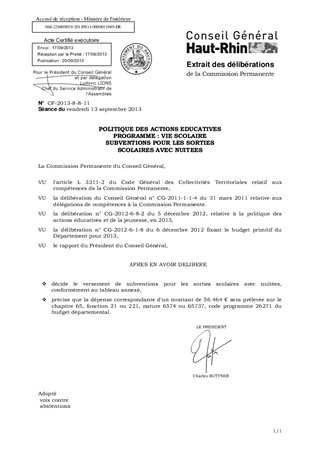 POLITIQUE DES ACTIONS EDUCATIVES PROGRAMME : VIE SCOLAIRE SUBVENTIONS POUR LES SORTIES SCOLAIRES AVEC NUITEES