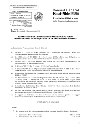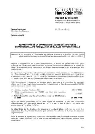 RÉPARTITION DE LA DOTATION DE L'ANNÉE 2013 DU FONDS DÉPARTEMENTAL DE PÉRÉQUATION DE LA TAXE PROFESSIONNELLE