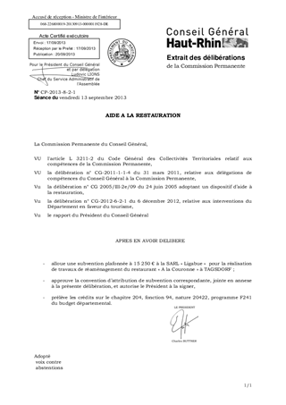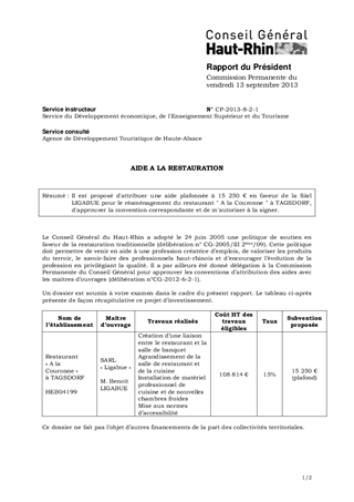 Il est proposé d'attribuer une aide plafonnée à 15 250 € en faveur de la Sàrl LIGABUE pour le réaménagement du restaurant " A la Couronne " à TAGSDORF, d'approuver la convention correspondante et de m'autoriser à la signer.