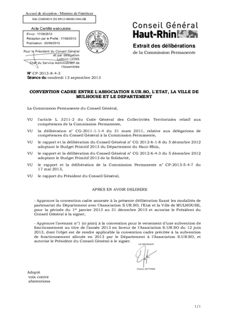 CONVENTION CADRE ENTRE L'ASSOCIATION S.UR.SO, L'ETAT, LA VILLE DE MULHOUSE ET LE DEPARTEMENT