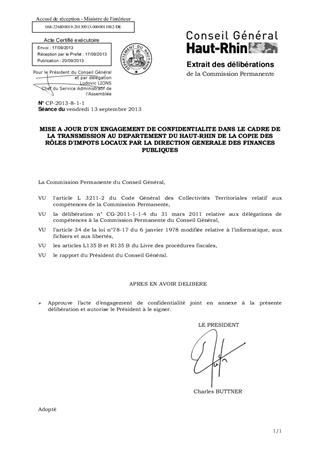 MISE A JOUR D'UN ENGAGEMENT DE CONFIDENTIALITE DANS LE CADRE DE LA TRANSMISSION AU DEPARTEMENT DU HAUT-RHIN DE LA COPIE DES RÔLES D'IMPOTS LOCAUX PAR LA DIRECTION GENERALE DES FINANCES PUBLIQUES
