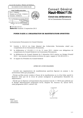 Le Fonds d'aide à l'organisation de manifestations sportives se déroulant dans le Haut-Rhin a été doté lors du B.P. 2013 de 120 000 €. Cette enveloppe est répartie au cas par cas, en cours d'année par la Commission Permanente. Le présent rapport vous propose une 4ème série de dossiers à prendre en compte pour un montant de 11 700 €.
