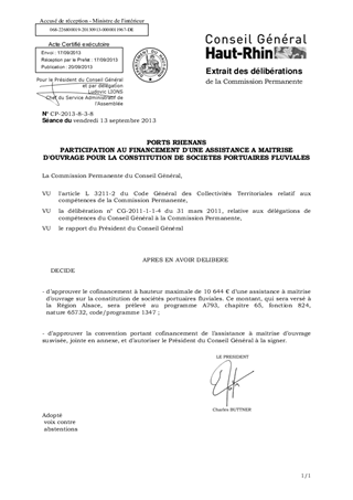 PORTS RHENANS PARTICIPATION AU FINANCEMENT D'UNE ASSISTANCE A MAITRISE D'OUVRAGE POUR LA CONSTITUTION DE SOCIETES PORTUAIRES FLUVIALES
