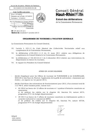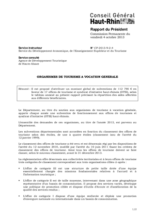 Il est proposé d'attribuer un montant global de subventions de 112 790 € en faveur de 17 offices de tourisme et syndicat d'initiative haut-rhinois (OTSI), selon le tableau annexé au présent rapport précisant la répartition des aides affectées aux différents bénéficiaires.