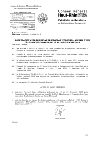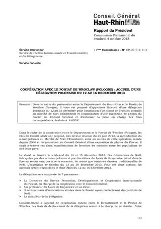 COOPÉRATION AVEC LE POWIAT DE WROCLAW (POLOGNE) : ACCUEIL D'UNE DÉLEGATION POLONAISE DU 12 AU 16 DECEMBRE 2013