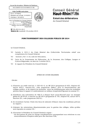FONCTIONNEMENT DES COLLEGES PUBLICS EN 2014