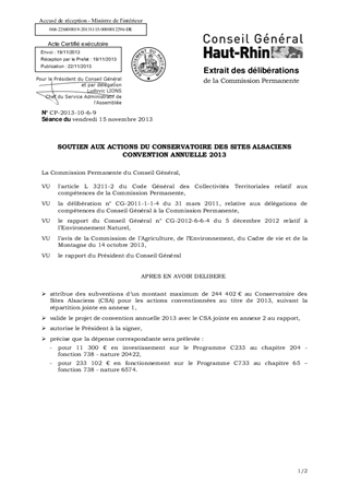 SOUTIEN AUX ACTIONS DU CONSERVATOIRE DES SITES ALSACIENS CONVENTION ANNUELLE 2013