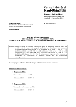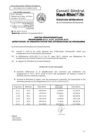 ROUTES DÉPARTEMENTALES PROGRAMMES A111, A131, A132 ET A171 AFFECTATION ET DÉSAFFECTATION DES AUTORISATIONS DE PROGRAMME