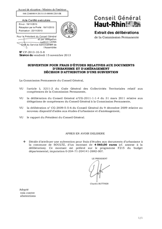 Décision d'attribution d'une subvention d'un montant de 4 060 € en faveur de la commune de SOULTZ, pour la révision de son Plan d'Occupation des Sols et transformation en Plan Local d'Urbanisme.