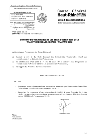 CONTRAT DE TERRITOIRE DE VIE THUR DOLLER 2010-2013 TRAIN THUR DOLLER ALSACE - TRAVAUX 2012