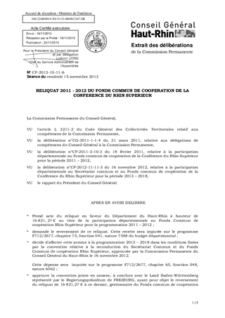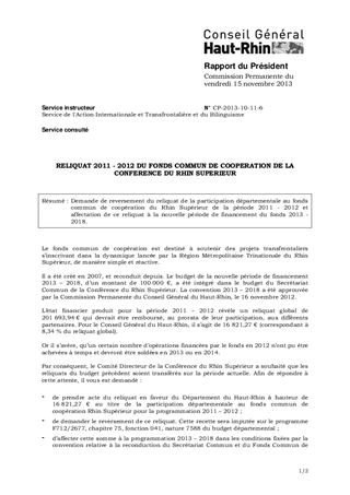 RELIQUAT 2011 - 2012 DU FONDS COMMUN DE COOPERATION DE LA CONFERENCE DU RHIN SUPERIEUR