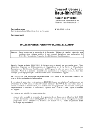 COLLÈGES PUBLICS: FORMATION "PLAISIR A LA CANTINE"