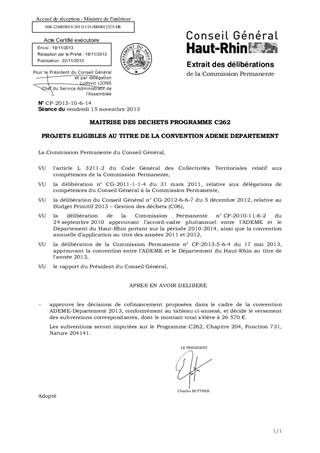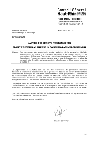 MAITRISE DES DECHETS PROGRAMME C262 PROJETS ELIGIBLES AU TITRE DE LA CONVENTION ADEME DEPARTEMENT