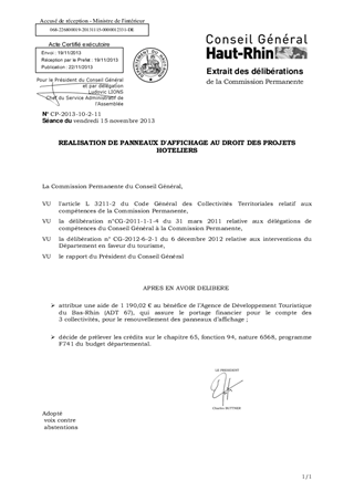 Il est proposé d'attribuer une aide de 1 190,02 € au bénéfice de l'Agence de Développement Touristique du Bas-Rhin, qui assure le portage financier pour le compte des 3 collectivités, pour le renouvellement des panneaux d'affichage au droit des projets hôteliers.