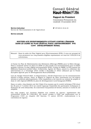 SOUTIEN AUX INVESTISSEMENTS LUTTANT CONTRE L'ÉROSION DANS LE CADRE DU PLAN VÉGÉTAL POUR L'ENVIRONNEMENT PVE C244 DÉVELOPPEMENT RURAL