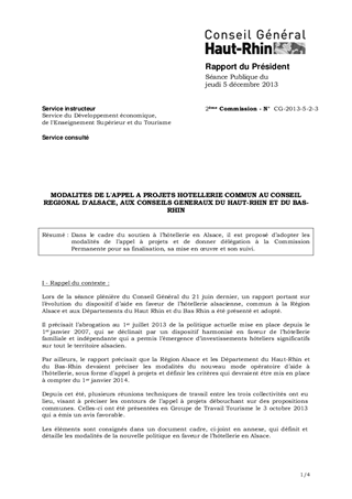 MODALITES DE L'APPEL A PROJETS HOTELLERIE COMMUN AU CONSEIL REGIONAL D'ALSACE, AUX CONSEILS GENERAUX DU HAUT-RHIN ET DU BAS-RHIN