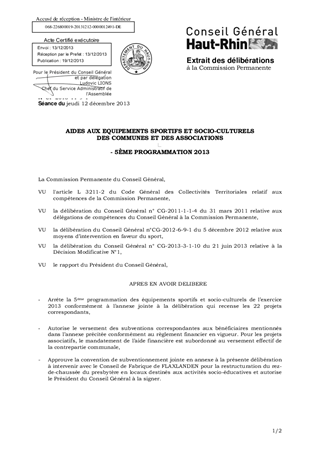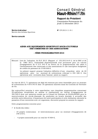 AIDES AUX EQUIPEMENTS SPORTIFS ET SOCIO-CULTURELS DES COMMUNES ET DES ASSOCIATIONS - 5ÈME PROGRAMMATION 2013