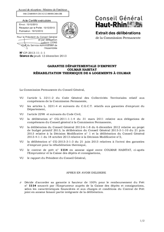 GARANTIE DÉPARTEMENTALE D'EMPRUNT COLMAR HABITAT RÉHABILITATION THERMIQUE DE 6 LOGEMENTS À COLMAR
