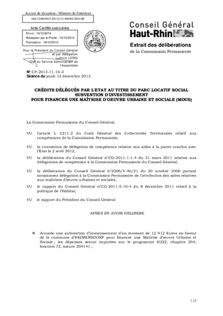 CRÉDITS DÉLÉGUÉS PAR L'ETAT AU TITRE DU PARC LOCATIF SOCIAL SUBVENTION D'INVESTISSEMENT POUR FINANCER UNE MAÎTRISE D'OEUVRE URBAINE ET SOCIALE (MOUS)