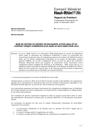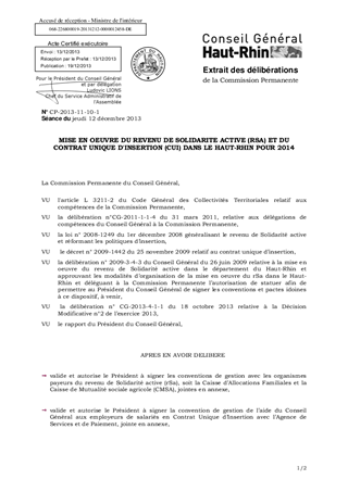 MISE EN OEUVRE DU REVENU DE SOLIDARITE ACTIVE (RSA) ET DU CONTRAT UNIQUE D'INSERTION (CUI) DANS LE HAUT-RHIN POUR 2014