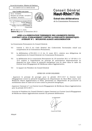 AIDE A LA RENOVATION THERMIQUE DES LOGEMENTS PRIVES CONTRAT LOCAL D'ENGAGEMENT CONTRE LA PRECARITE ENERGETIQUE - AVENANT N°1 - MULHOUSE ALSACE AGGLOMERATION