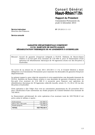 GARANTIE DÉPARTEMENTALE D'EMPRUNT O.P.H. HABITATS DE HAUTE ALSACE RÉHABILITATION THERMIQUE DE 48 LOGEMENTS À GUEBWILLER