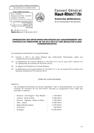 APPROBATION DES ENVELOPPES SPECIFIQUES EAU-ASSAINISSEMENT DES CONTRATS DE TERRITOIRE DE VIE 2014-2019 ET DES MODALITES D'AIDE CORRESPONDANTES