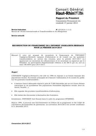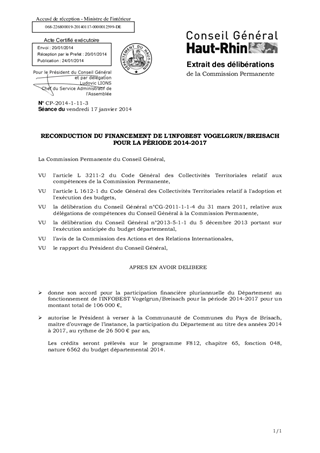 RECONDUCTION DU FINANCEMENT DE L'INFOBEST VOGELGRUN/BREISACH POUR LA PÉRIODE 2014-2017