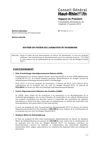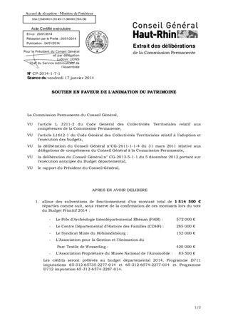 Dans le cadre de nos interventions en faveur du patrimoine, il vous est proposé d’allouer des subventions de fonctionnement pour un montant total de 1 514 500 €, sous réserve de la confirmation de ces montants lors du vote du Budget Primitif 2014.