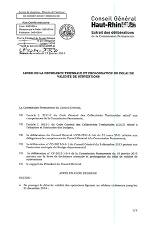 LEVEE DE LA DECHEANCE TRIENNALE ET PROLONGATION DU DELAI DE VALIDITE DE SUBVENTIONS
