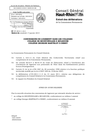 CONCESSIONS DE LOGEMENT DANS LES COLLEGES COLLÈGE DE BOURTZWILLER À MULHOUSE COLLÈGE GEORGES MARTELOT À ORBEY