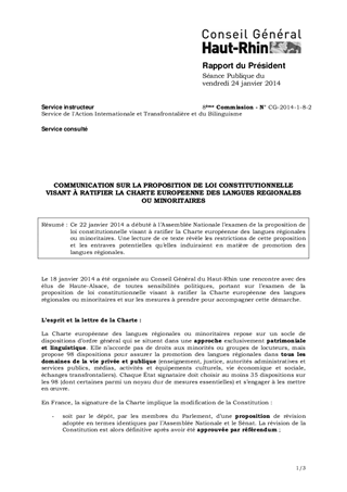 COMMUNICATION SUR LA PROPOSITION DE LOI CONSTITUTIONNELLE VISANT À RATIFIER LA CHARTE EUROPEENNE DES LANGUES REGIONALES OU MINORITAIRES
