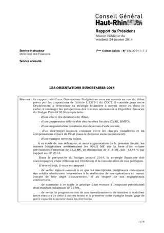 LES ORIENTATIONS BUDGETAIRES 2014