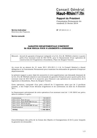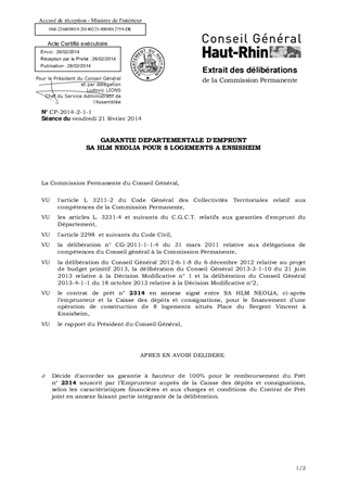 GARANTIE DEPARTEMENTALE D'EMPRUNT SA HLM NEOLIA POUR 8 LOGEMENTS A ENSISHEIM