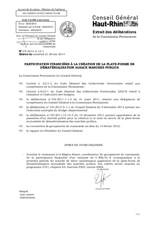 PARTICIPATION FINANCIÈRE À LA CRÉATION DE LA PLATE-FORME DE DÉMATÉRIALISATION ALSACE MARCHES PUBLICS