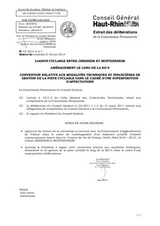 LIAISON CYCLABLE ENTRE JEBSHEIM ET MUNTZENHEIM AMÉNAGEMENT LE LONG DE LA RD 9 CONVENTION RELATIVE AUX MODALITÉS TECHNIQUES ET FINANCIÈRES DE GESTION DE LA PISTE CYCLABLE DANS LE CADRE D'UNE SUPERPOSITION D'AFFECTATIONS