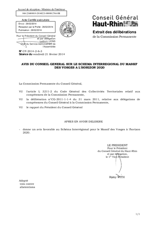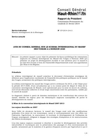 AVIS DU CONSEIL GENERAL SUR LE SCHEMA INTERREGIONAL DU MASSIF DES VOSGES A L'HORIZON 2020