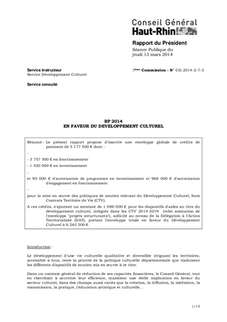 BP 2014EN FAVEUR DU DEVELOPPEMENT CULTUREL