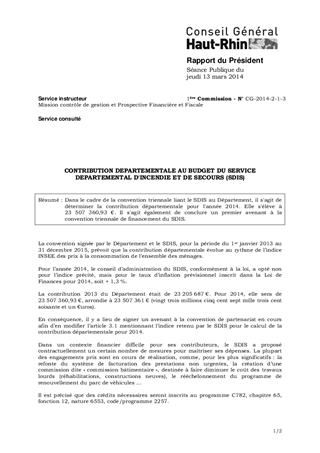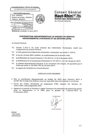 Dans le cadre de la convention triennale liant le SDIS au Département, il s'agit de déterminer la contribution départementale pour l'année 2014. Elle s'élève à 23 507 360,93 €. Il s'agit également de conclure un premier avenant à la convention triennale de financement du SDIS.