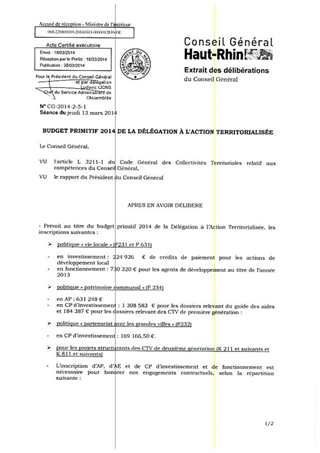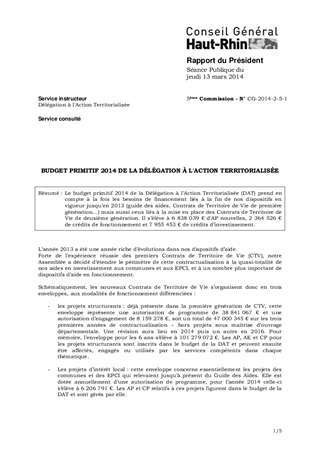 BUDGET PRIMITIF 2014 DE LA DÉLÉGATION À L'ACTION TERRITORIALISÉE