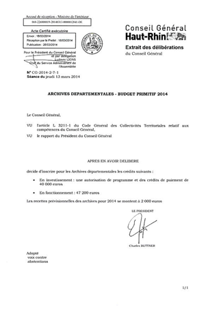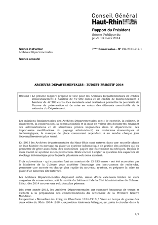ARCHIVES DEPARTEMENTALES - BUDGET PRIMITIF 2014