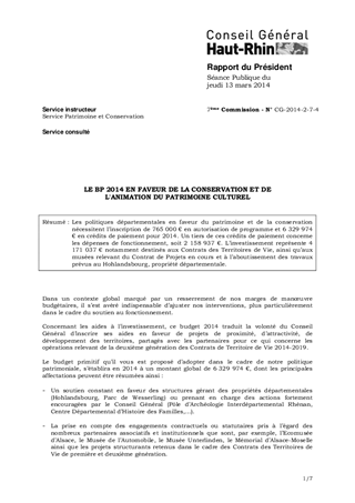 LE BP 2014 EN FAVEUR DE LA CONSERVATION ET DE L'ANIMATION DU PATRIMOINE CULTUREL