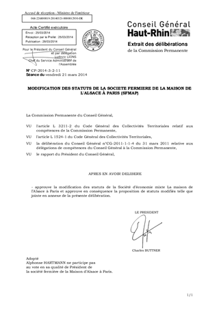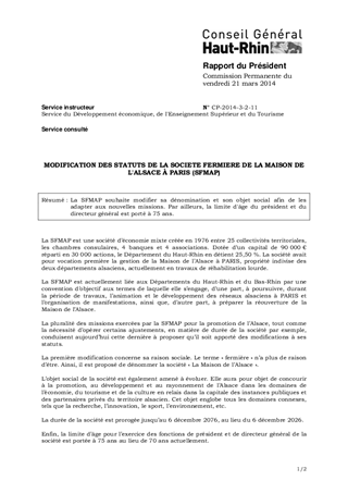 MODIFICATION DES STATUTS DE LA SOCIETE FERMIERE DE LA MAISON DE L'ALSACE À PARIS (SFMAP)