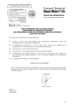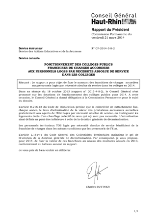 Le rapport a pour objet de fixer le montant des franchises de charges accordées aux personnels logés par nécessité absolue de service dans les collèges en 2014.