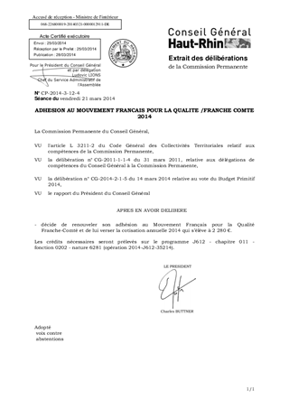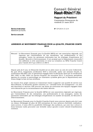 ADHESION AU MOUVEMENT FRANCAIS POUR LA QUALITE /FRANCHE COMTE 2014