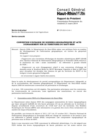 CONVENTION D'ECHANGE DE DONNEES GEOGRAPHIQUES ET ACTE D'ENGAGEMENT SUR LE TERRITOIRE DU HAUT-RHIN