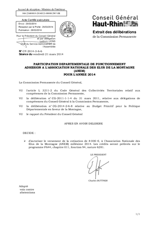 PARTICIPATION DEPARTEMENTALE DE FONCTIONNEMENT ADHESION A L'ASSOCIATION NATIONALE DES ELUS DE LA MONTAGNE (ANEM) POUR L'ANNEE 2014